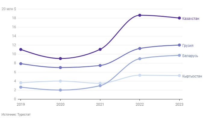 В 2022–2023 годах экспорт европейских и американских товаров во многие дружественные России или нейтральные страны вырос в разы.