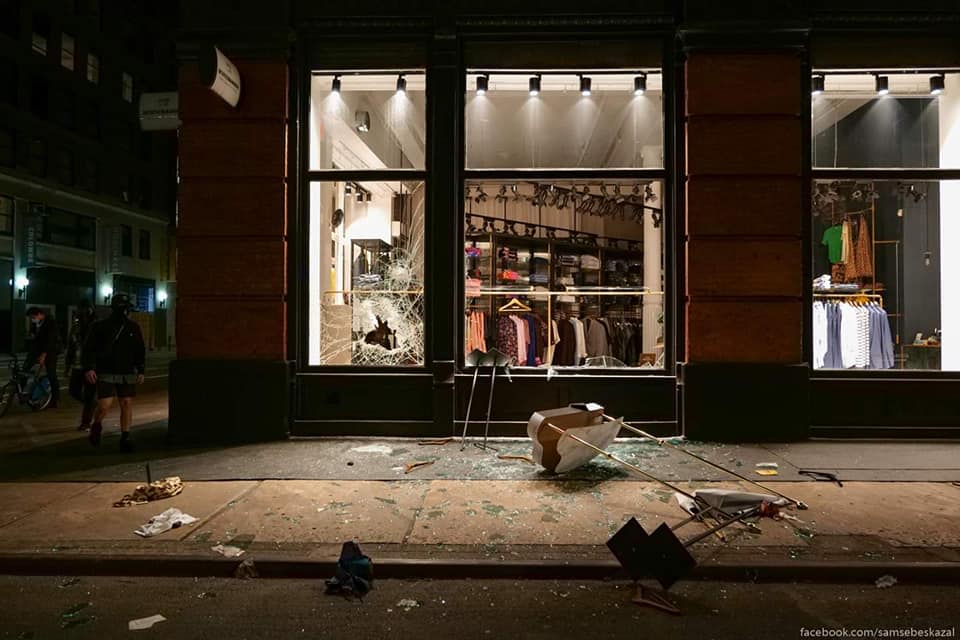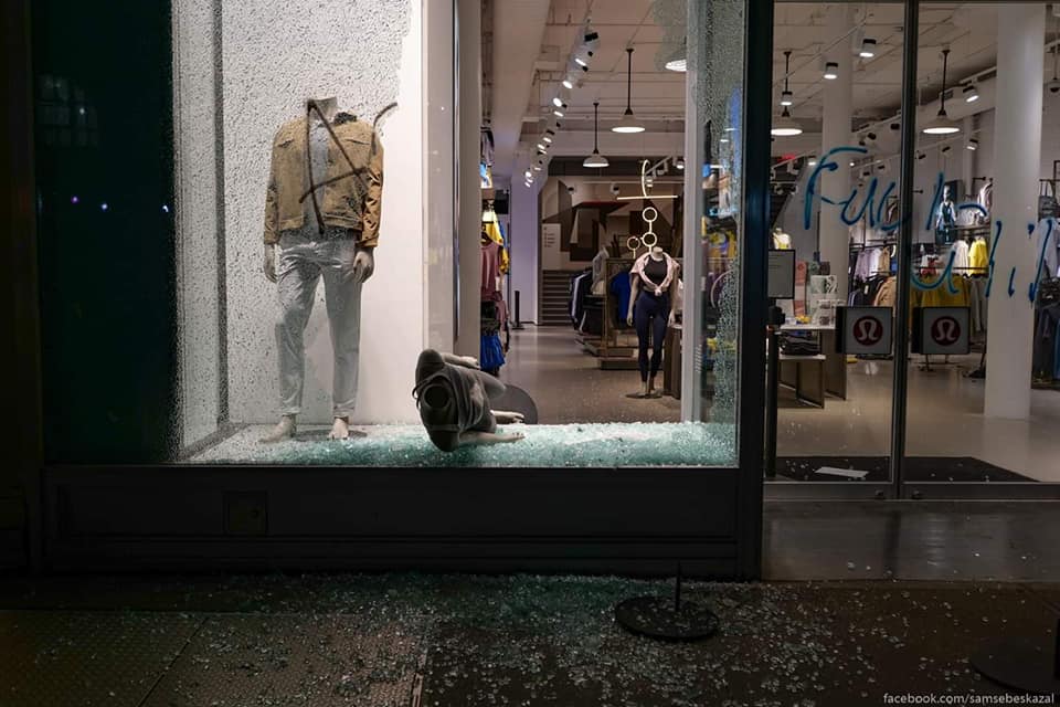 Вернулся домой только в 5 утра. Всю ночь наблюдал, как люди грабят город и как нью-йоркская полиция с этим ничего не делает. Началось все с очередных протестных манифестаций в Бруклине и Манхэттене, а вылилось в массовые грабежи и вандализм. Модного района Сохо с нами больше нет. Он был разграблен полностью и там происходил такой беспредел, что сам факт нахождения на улице с камерой становился опасным для здоровья.