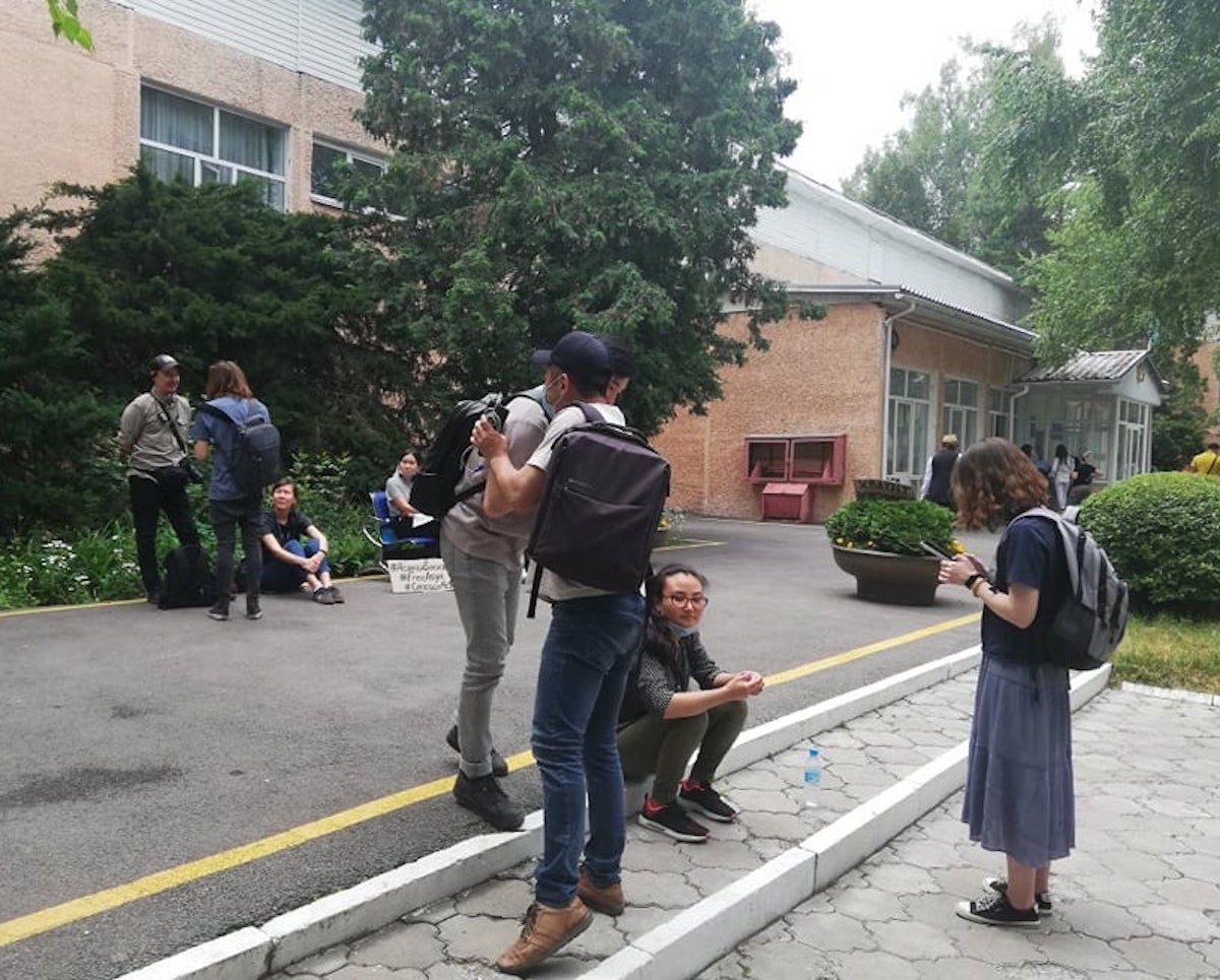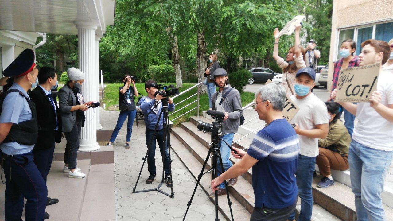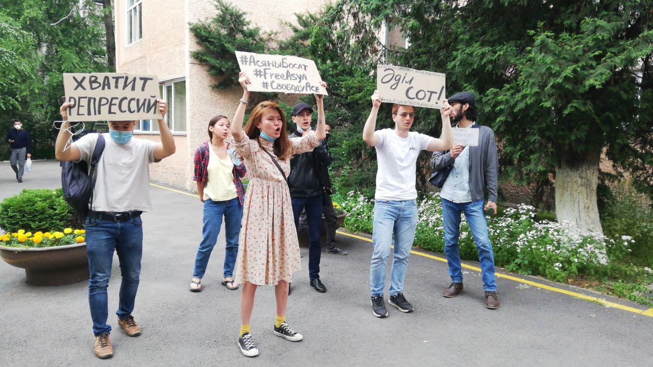 Как только стало известно, что суд пройдет сегодня, молодежь пришла поддержать гражданскую активисту Асию Тулесову. Заседание, по сообщениям правозащитников, должно начаться в 14 часов (по времени Нур-Султана), оно будет проходить в онлайн режиме и решаться там будет вопрос о мере пресечения — то есть оставят ли Асию под стражей на время следствия.