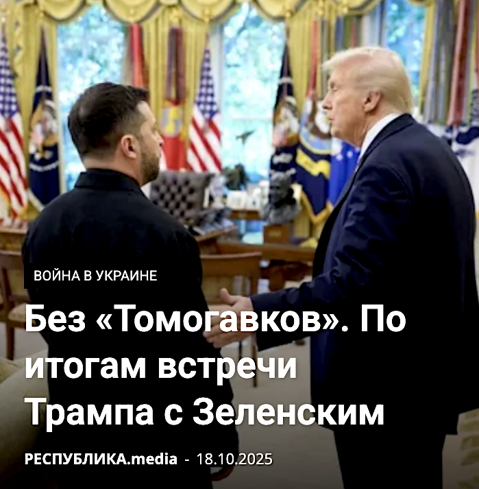По словам европейского чиновника, пишет Financial Times, Трамп потребовал от Зеленского, что тому необходимо заключить сделку, иначе ему грозит уничтожение. Чиновник сообщил, что Трамп сказал Зеленскому, что тот проигрывает войну, предупредив: «Если Путин этого захочет, он вас уничтожит».