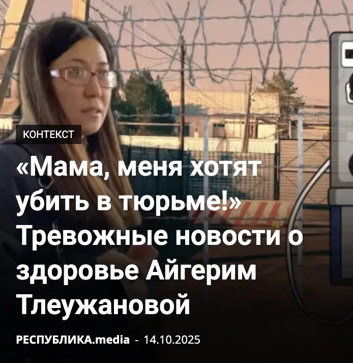Недомогание, общая слабость, сильное головокружение, обмороки — адвокат Айнара Айдарханова сильно встревожена состоянием здоровья активистки и журналистки Айгерим Тлеужановой, отбывающей срок за якобы захват аэропорта во время Кантара-2022.