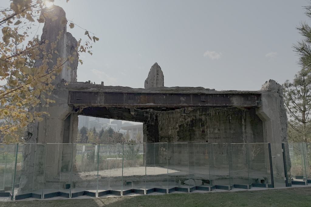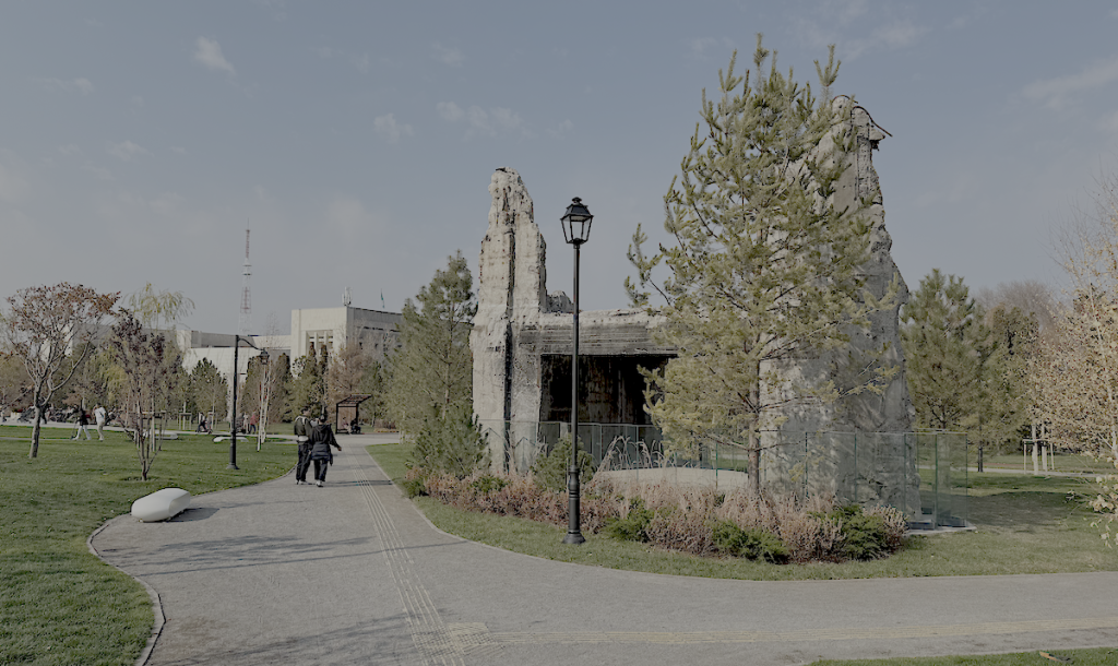На месте бывшей резиденции президента в Алматы теперь сквер. Там, где три года назад пролилась кровь, теперь гуляют семьями. О битве за это здание сейчас напоминает только один фрагмент.