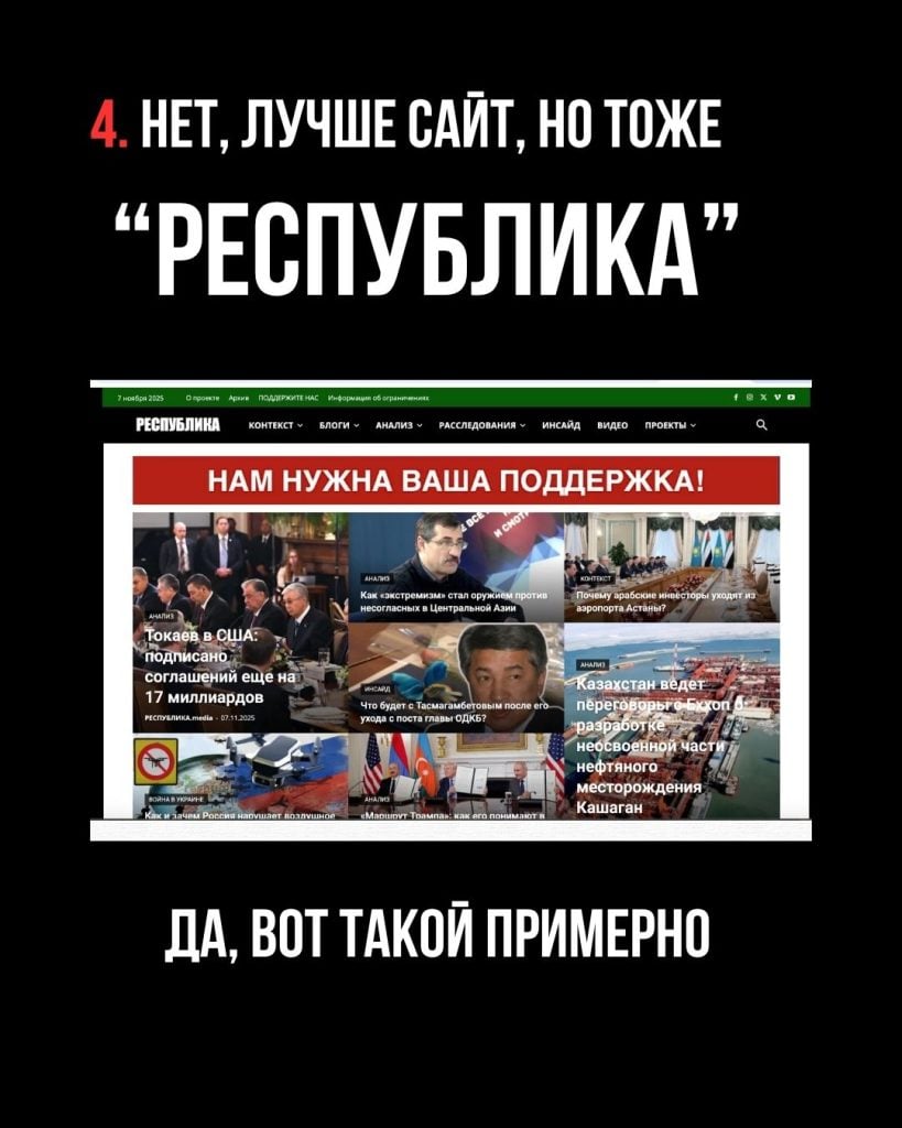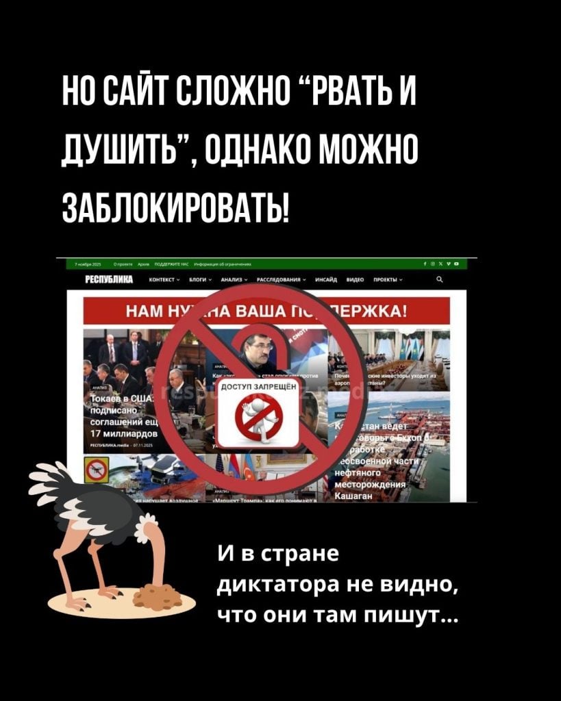 Тем более что путь к нашим читателям есть и при блокировке: сайт можно видеть с использованием VPN, доступны t-канал https://t.me/respublikaKZmediaNEWS и страница в Facebook, а международная организация «Репортеры без границ» создала для нас «зеркало», которое видно на территории Казахстана.