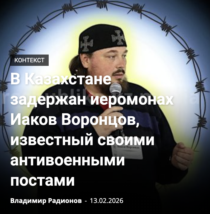 - В Казахстане задержан иеромонах Иаков Воронцов, известный своими антивоенными постами