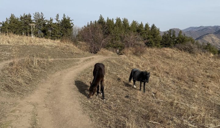Так начинается путь до урочища Кок-Жайляу. Но впереди, если не сдаваться, будет награда: чистейший воздух, щиплющие траву лошади, живописные горные пики, доброжелательные, временно освобожденные от городских неврозов путники, смотровые площадки, хвойные леса и опушки…