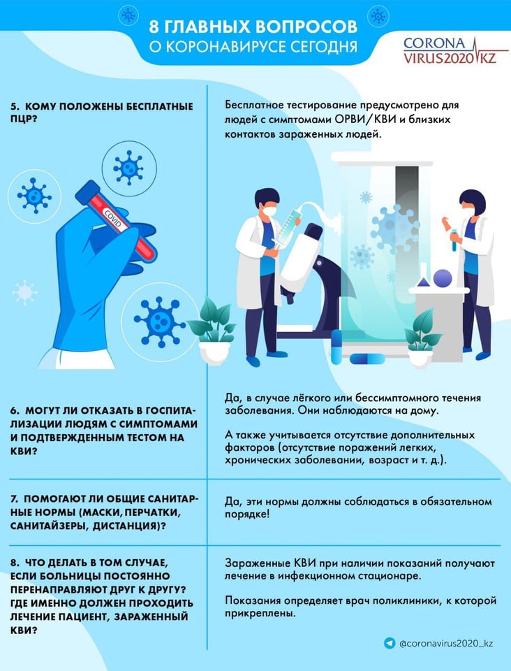 «Сегодня состоялась межведомственная комиссия под председательством премьер-министра, где также акимам областей и городов Алматы, Нур-Султан, Шымкент были даны поручения о развертывании дополнительных ПЦР лаборатории в медицинских организации, т.е. при наличии имеющейся инфраструктуры сделать доступной лабораторную диагностику. В течении следующих 10 дней будет проведен закуп 1 млн 200 тыс ПЦР тестов», — заявила она.