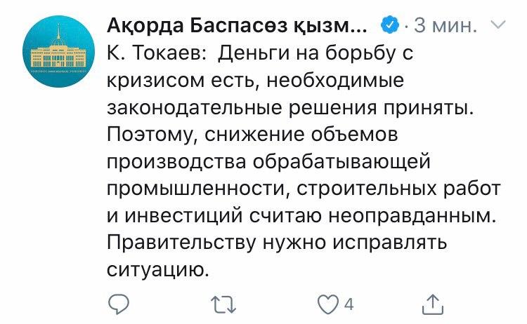 Жестко. Но будет ли результат? Сегодня в закрытом режиме прошло расширенное заседание правительства под председательством президента Казахстана. На котором обсуждалась сложная ситуация, в которой оказалась страна из-за пандемии коронавируса. Журналисты следили за тем, что происходило на нем, по твиттер-аккаунту Акорды. Подробности – читайте в материале «Поговорим об эффективности?».