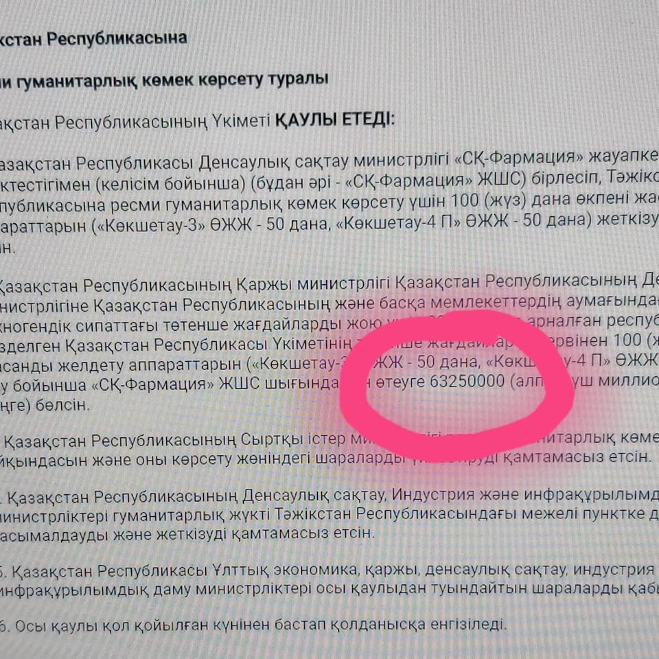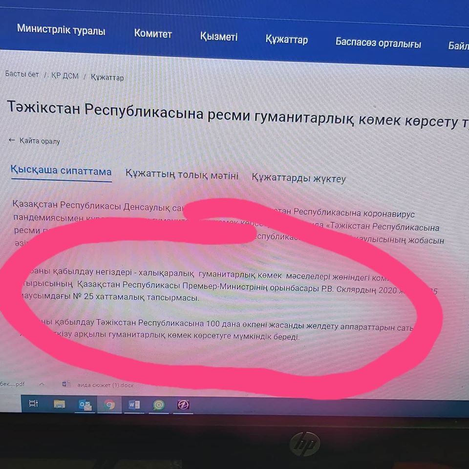 100 аппаратов ИВЛ гумпомощь Таджикистану от Казахстана. Журналистка Ирина Советжанкызы выяснила, что РК выделено 63 миллиона тенге на закупку 100 аппаратов ИВЛ для Таджикистана. Всё бы ничего, но в самом Казахстане люди сами скидываются на эти аппараты, так как их не хватает. Нам самим этими аппаратами гумпомощь оказывают соседи. Ждём объяснений.