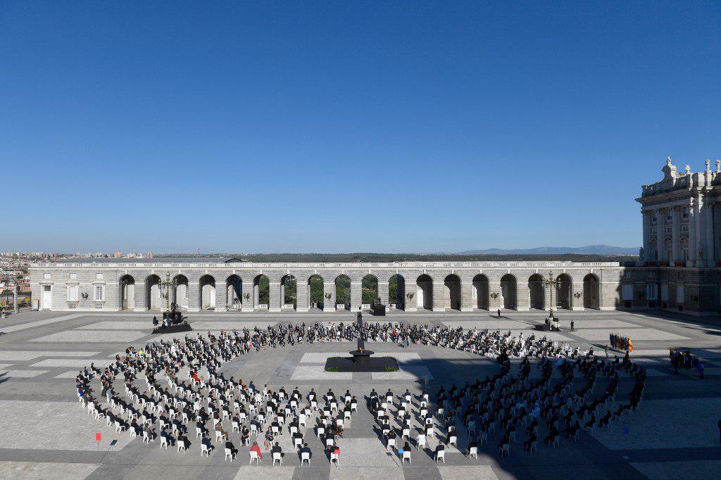 В Мадриде на площади перед Королевским дворцом прошла церемония прощания с жертвами пандемии коронавируса. В ней приняли участие король Филипп VI и его супруга королева Летиция, члены правительства, главы регионов, парламентарии, глава совета ЕС Шарль Мишель, президент Еврокомиссии Урсула фон дел Ляйен, председатель Европарламента Дэвид Сассоли и главный дипломат ЕС Хосеп Боррелл.