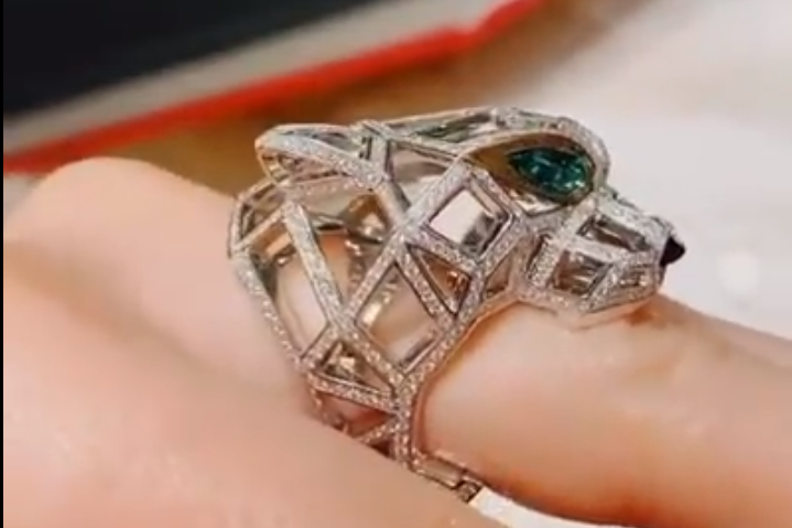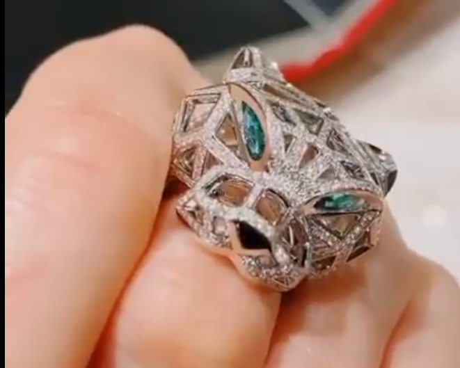 Наконец, великолепное кольцо Panthère из белого золота с 545 бриллиантами, изумрудами, ониксами в бриллиантовой огранке, стоит от 78 500 долларов США. И оно не самое дорогое в этой коллекции, которую можно посмотреть на сайте.