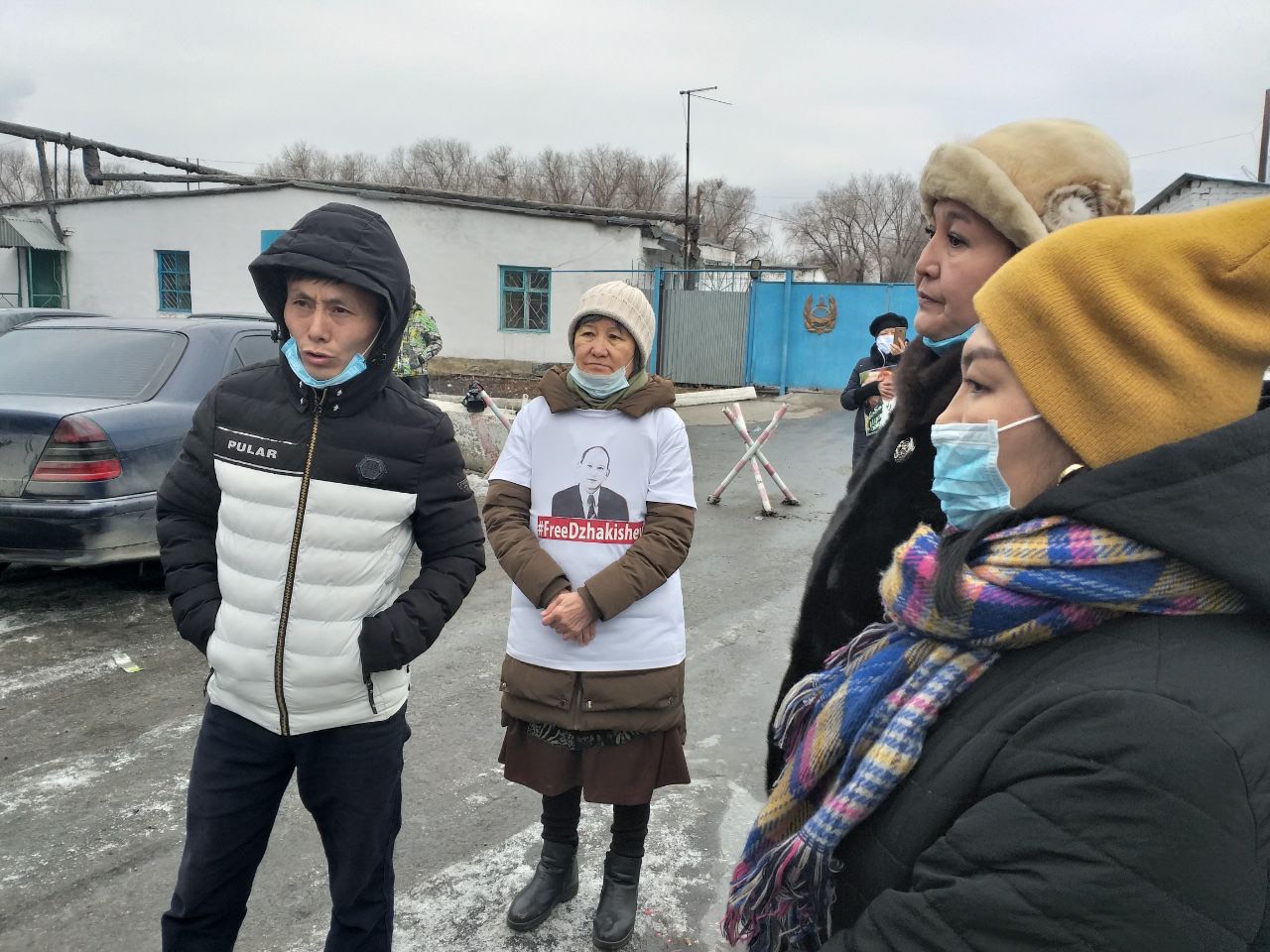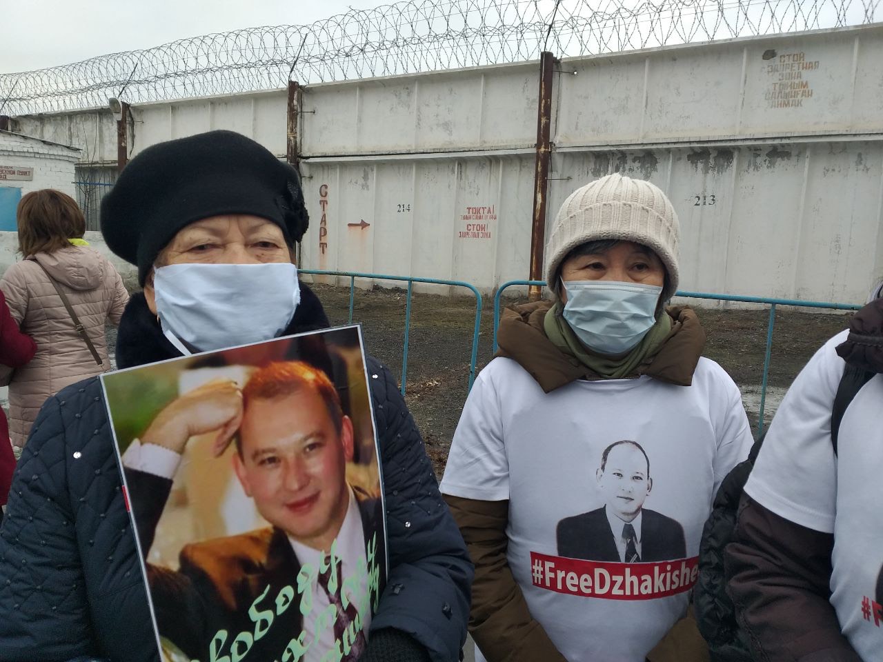 Около 50 активистов из Алматы, Нур-Султана, Семея, Усть-Каменогорска, Атырау и других регионов собрались возле ворот учреждения с 9 часов утра, чтобы встретить Мухтара Джакишева.